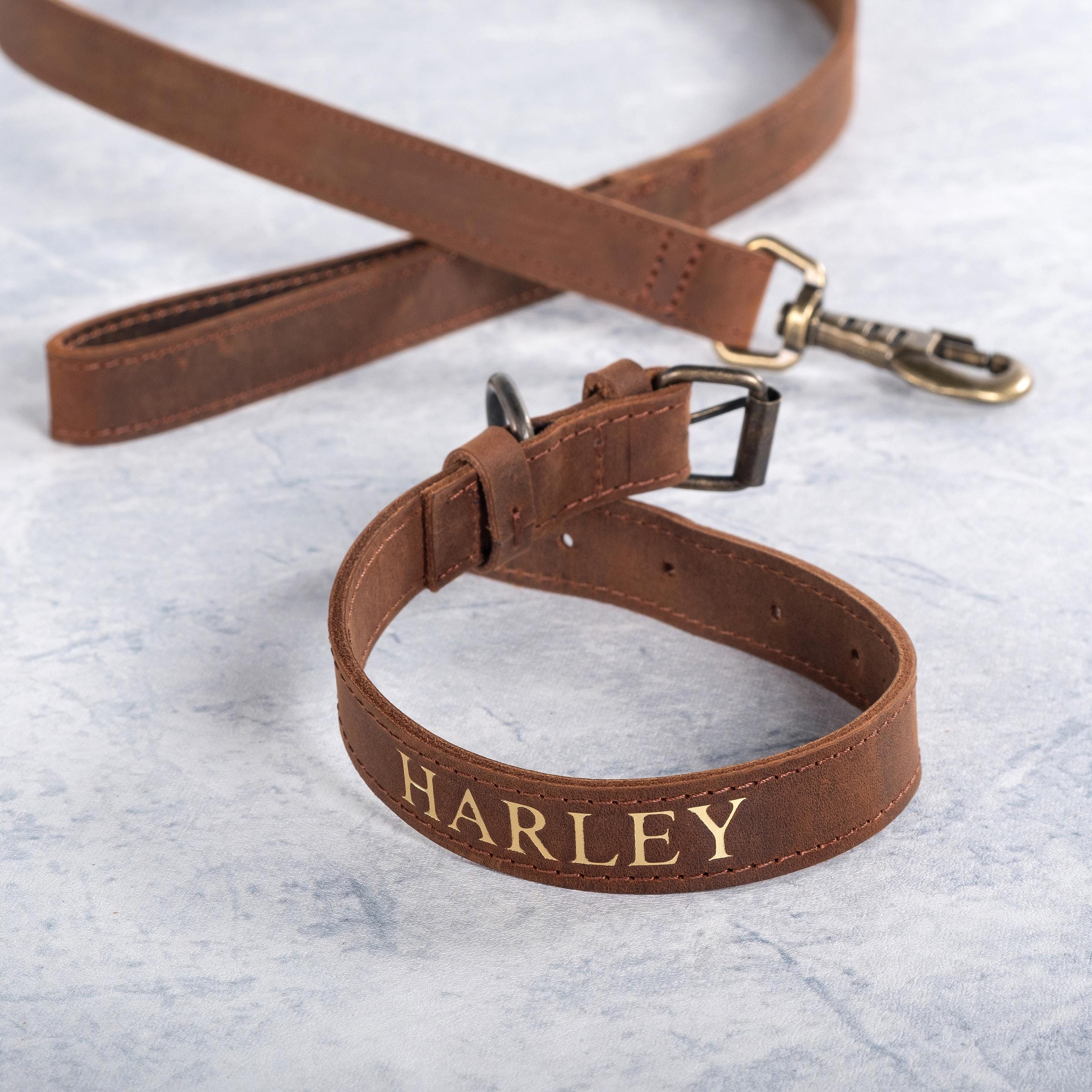 Leather Dog Collar with Name, Personalized Cat Collar, Leather Collar with Leather Leash, Dog Collar Leather, Dog Collar Girl, Puppy Collar