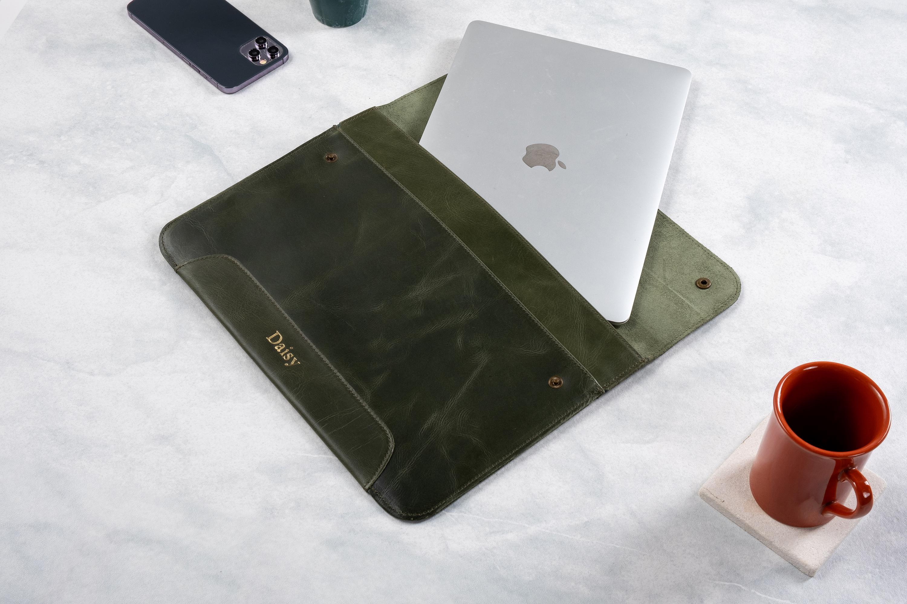 Elevate your laptop protection and style with our premium Leather Laptop Sleeve. Crafted from genuine, supple leather, this sleek and sophisticated sleeve not only shields your laptop from scratches and bumps but also adds a touch of timeless elegance to your daily carry. It's a versatile and essential accessory for the modern professional who values both functionality and aesthetics. Carry your laptop in confidence with our Leather Laptop Sleeve, where classic design meets reliable protection.